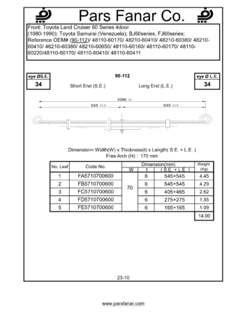 48110-60160, 48110-60170, 48110-60220, 48110-60410, 48110-60411, 48210-60380, 48210-60410, 48210-60650 :OEM کد