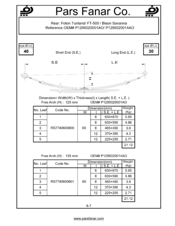 دست فنر چرخ عقبFoton Tunland/FT-500/Bison Savanna