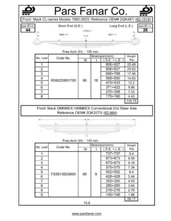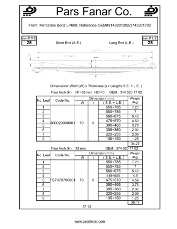 • طول لبه بلند ( L E ) فنر تخت