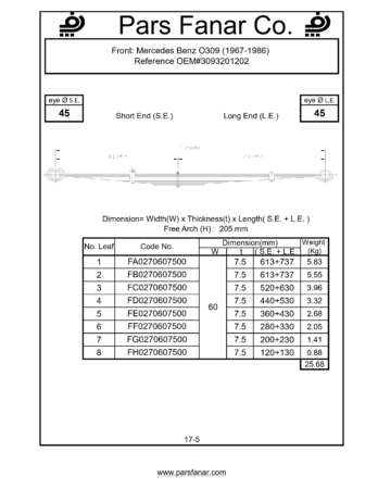 دست فنر چرخ جلو Mercedes Benz LP608