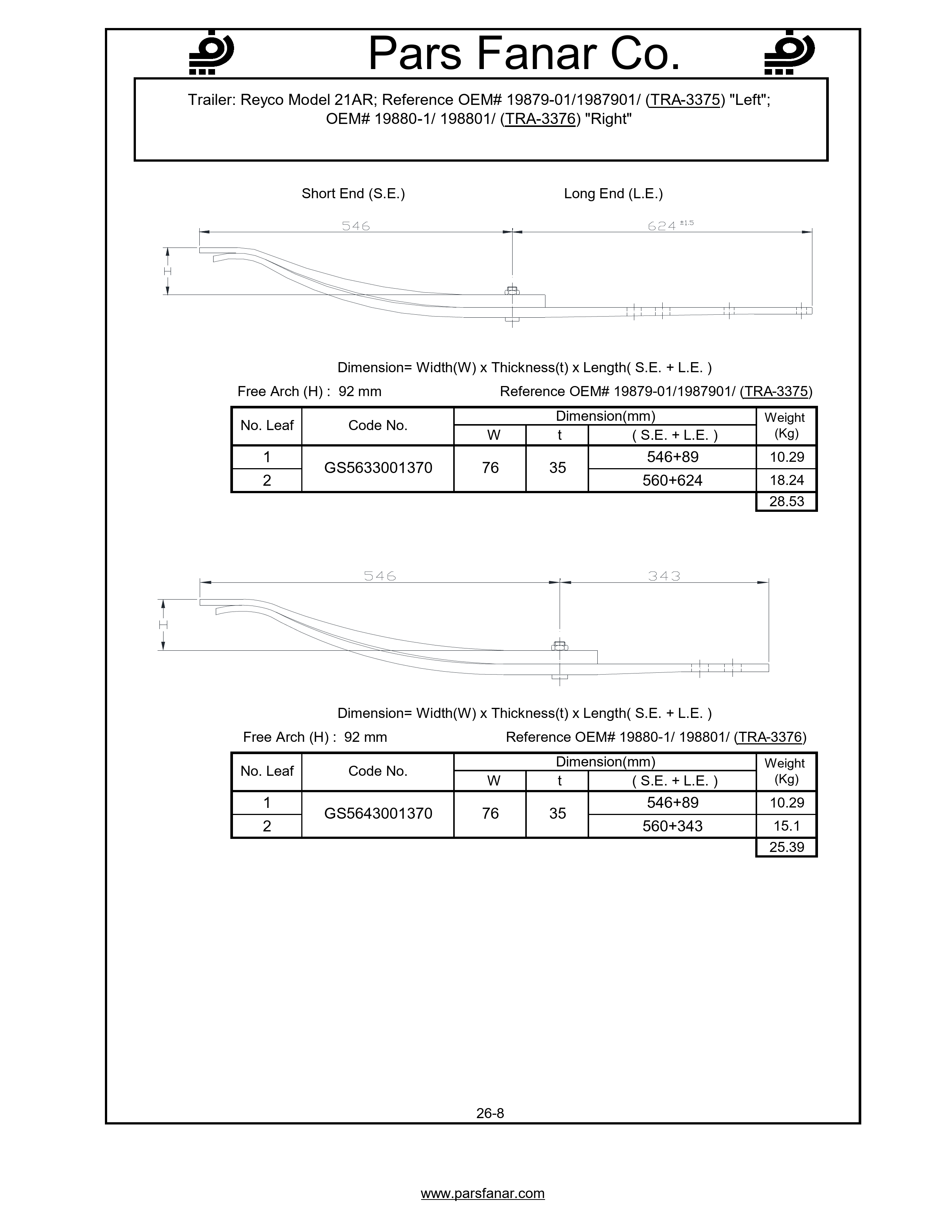 OEM# 19880-1/ 198801/ (TRA-3376) “Right”