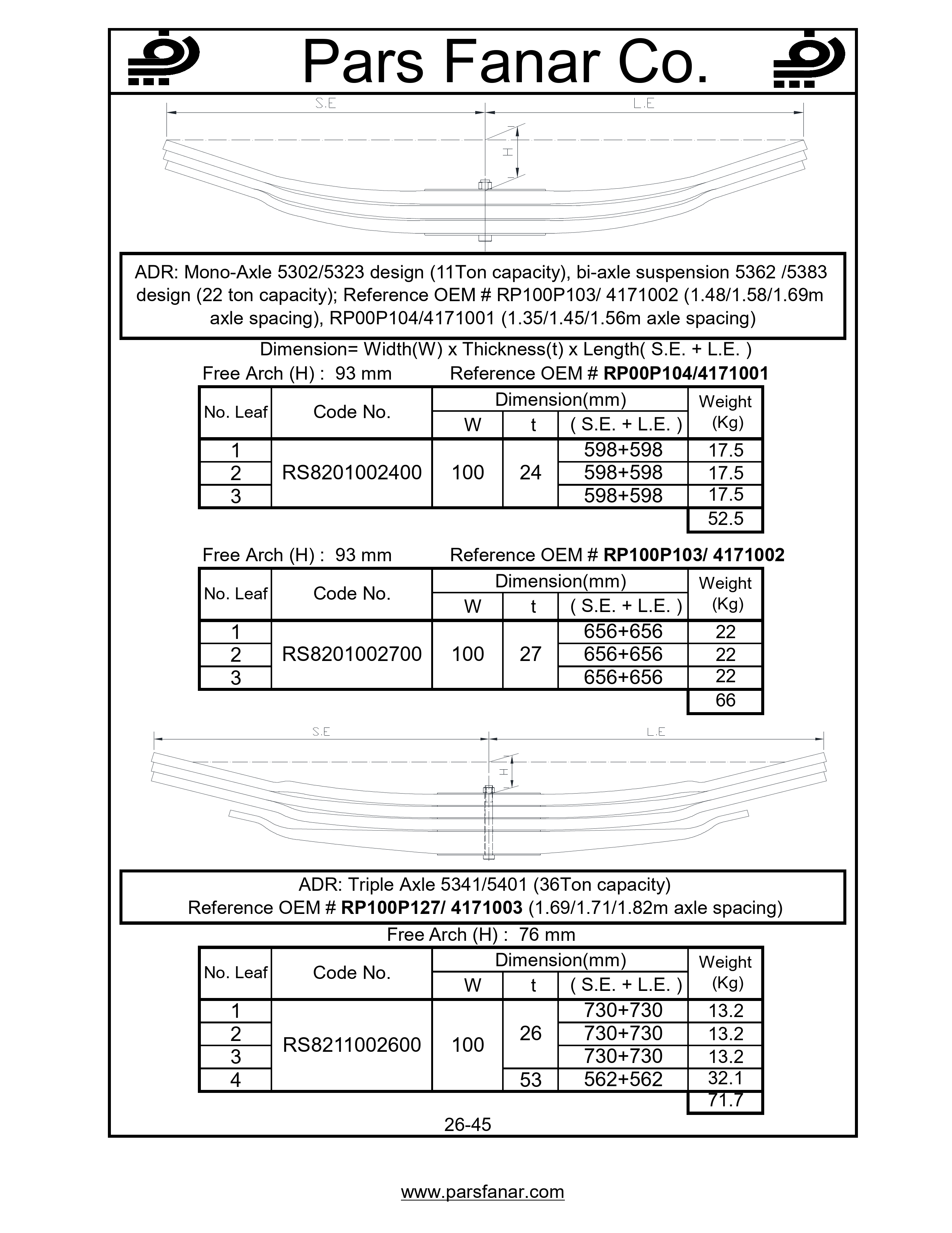 | نام خودرو/کابین/تریلی | ADR: Mono-Axle 5302/5323 design (11Ton capacity), bi-axle suspension 5362 /5383 design (22 ton capacity) |