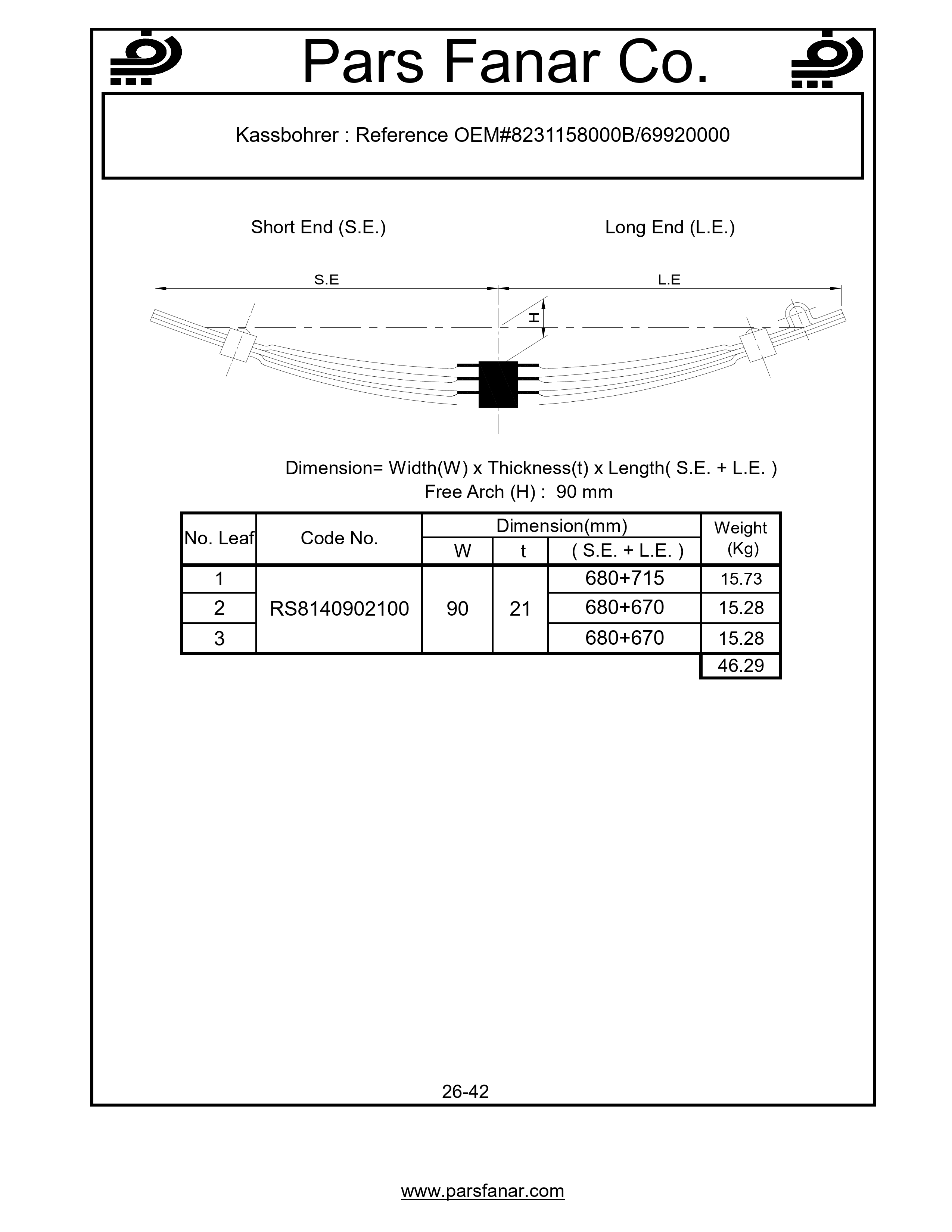 | تعداد لایه های اصلی (M) فنر تخت | |