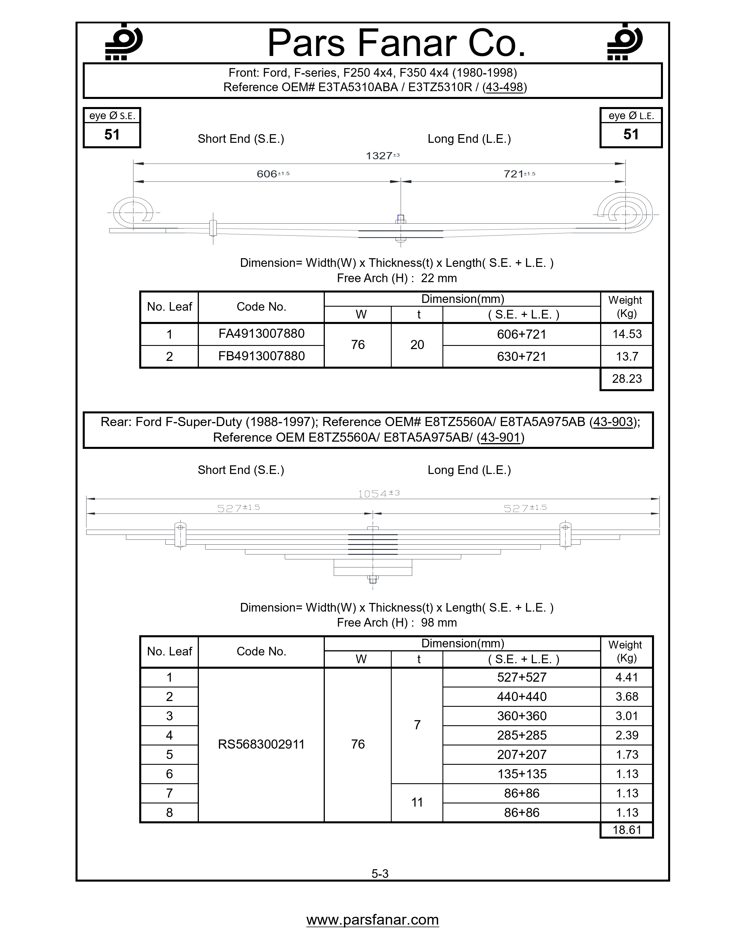 | تعداد لایه های اصلی (M) فنر تخت | |