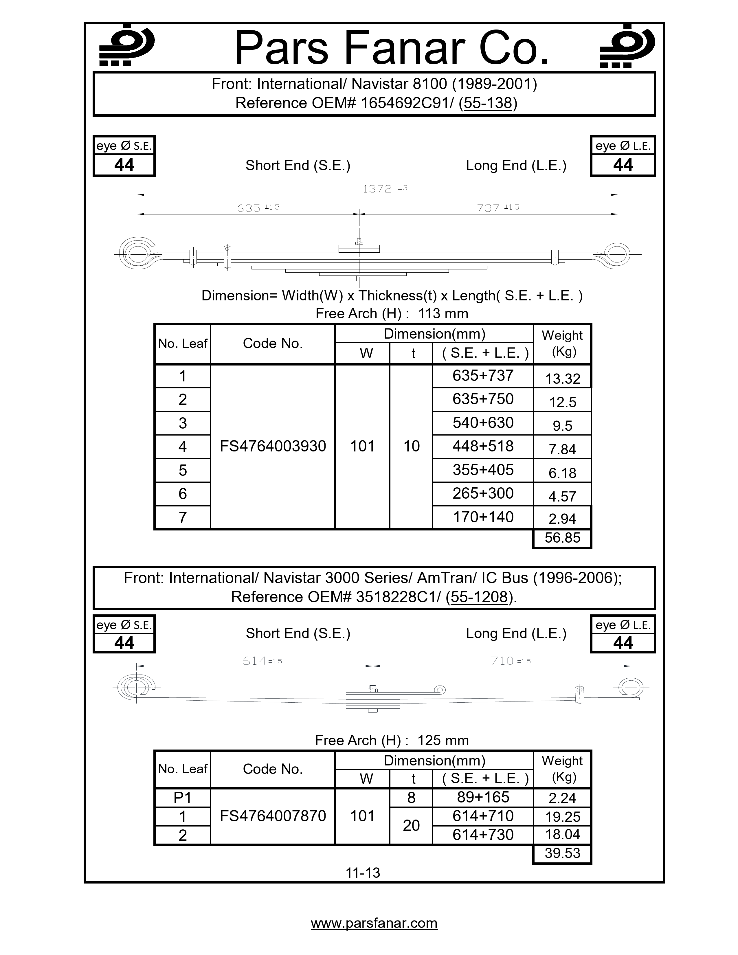 | تعداد لایه های کمکی (H) فنر تخت | |