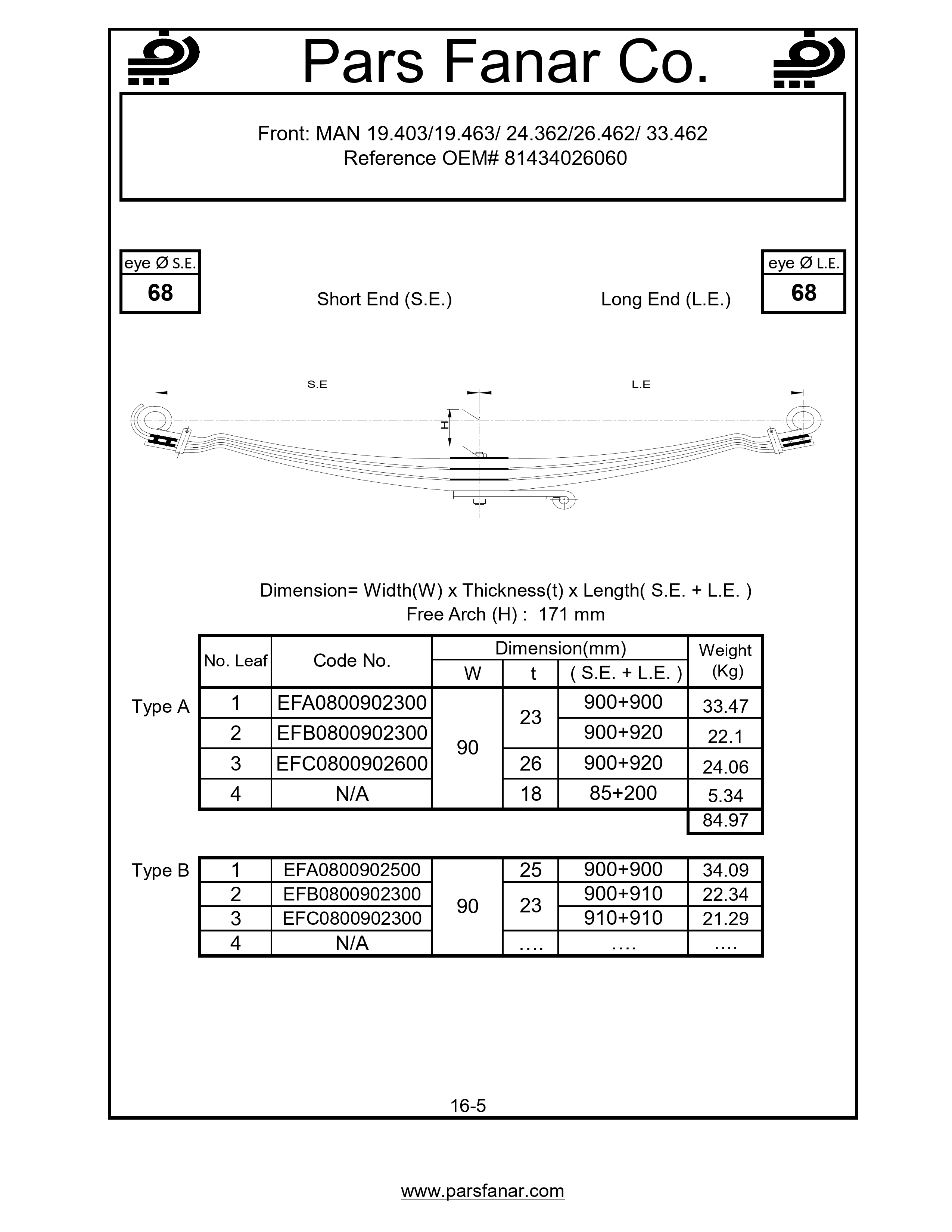 | تعداد لایه های اصلی (M) فنر تخت | |