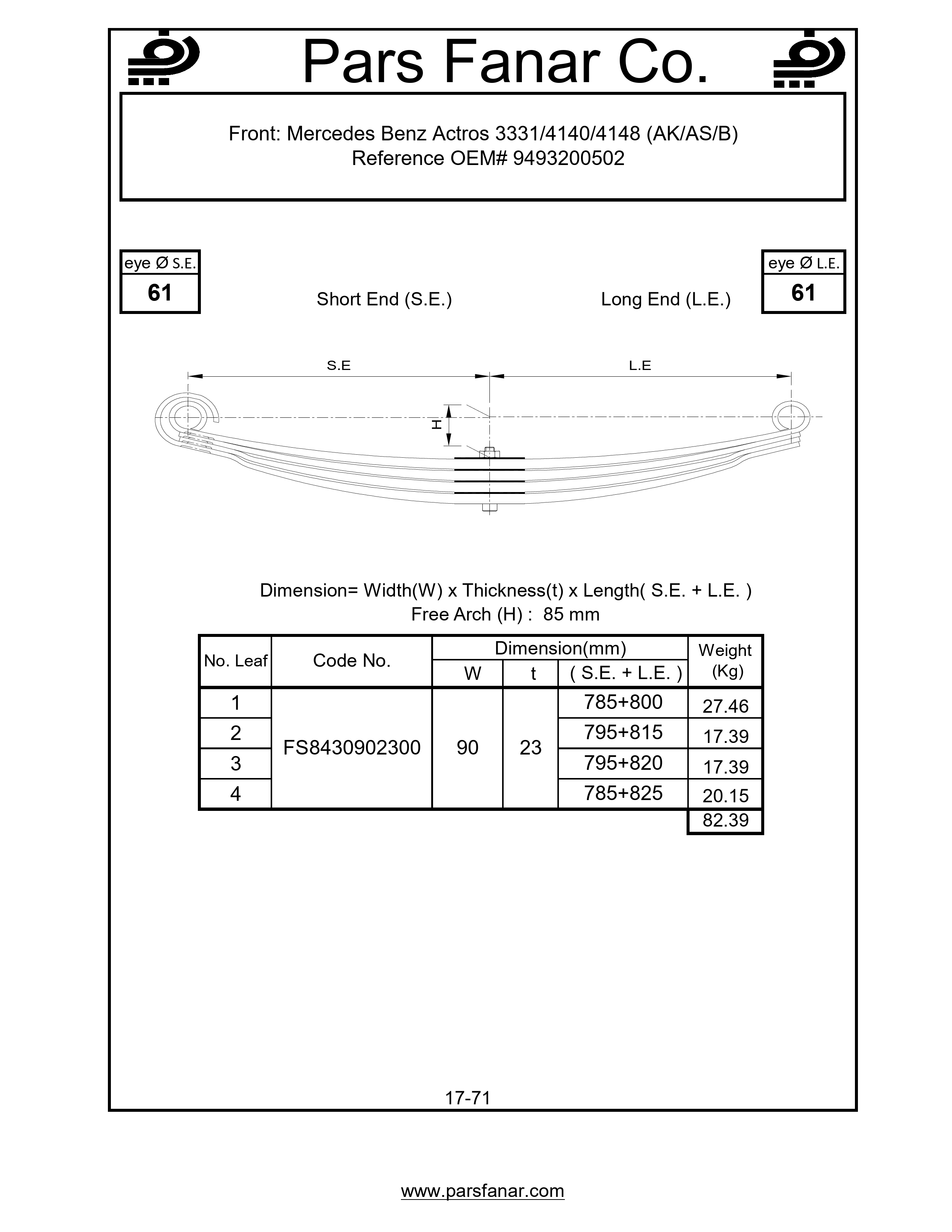 دست فنر پارابولیک چرخ جلو Mercedes Benz Actros