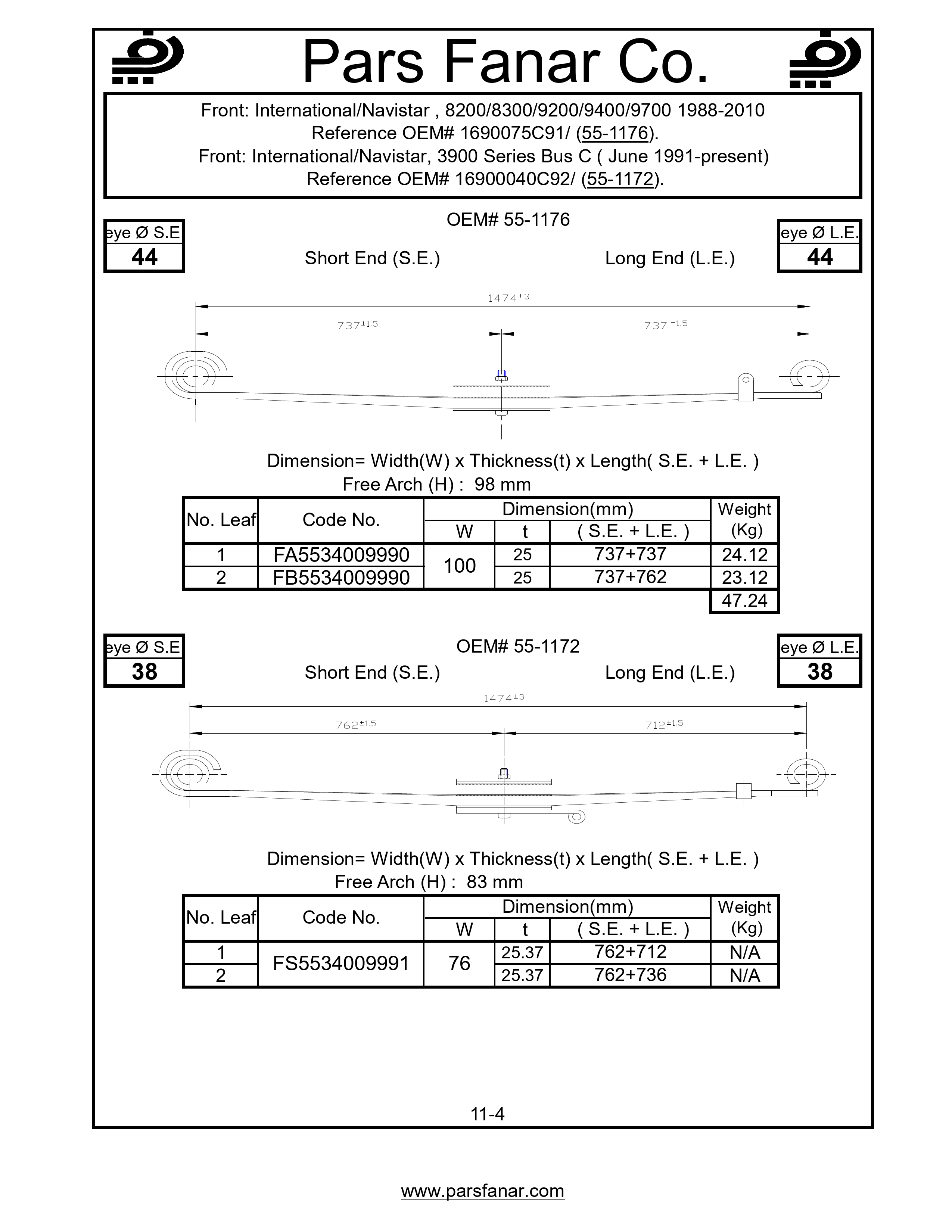 | طول لبه بلند (LE) فنر تخت | |