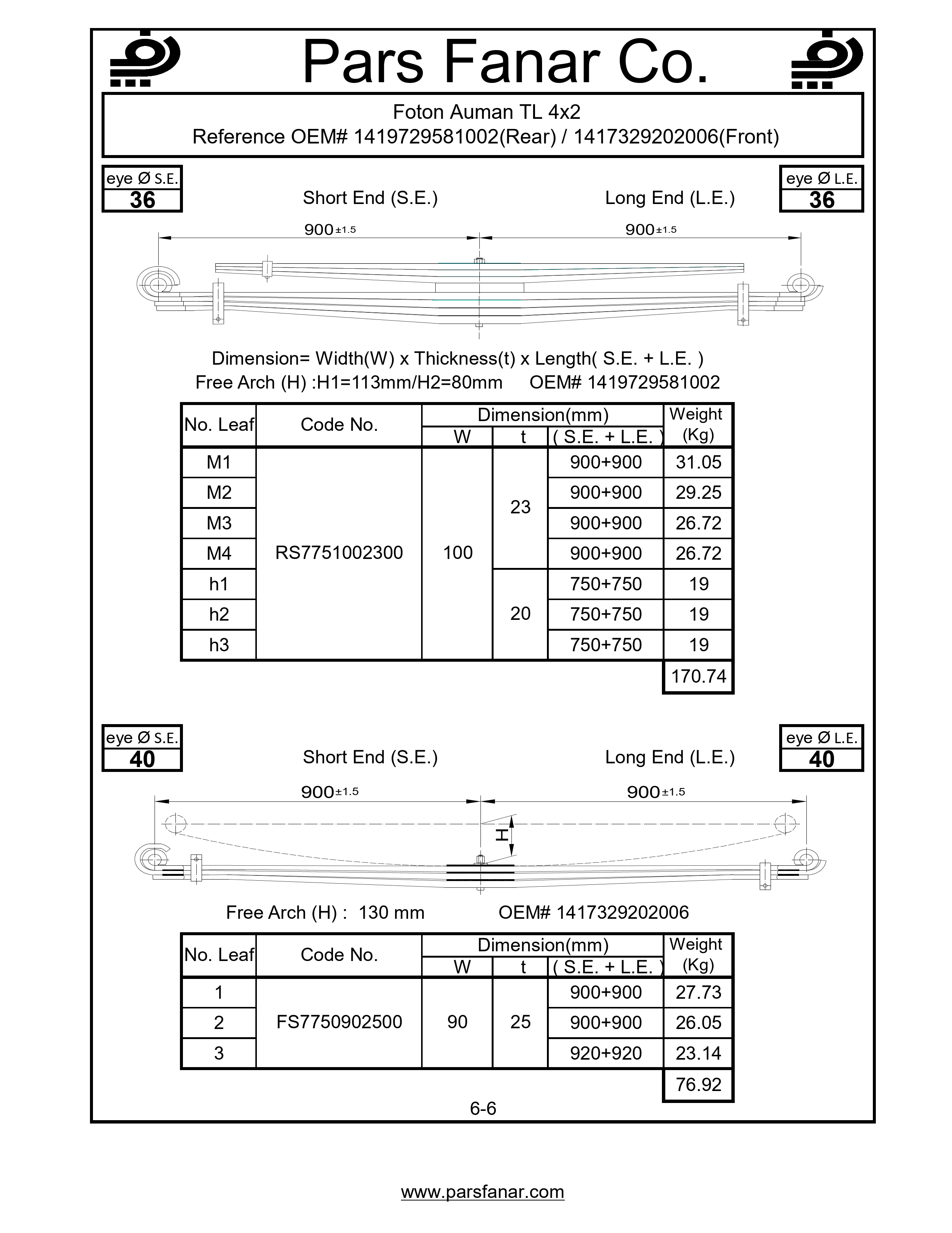 | تعداد لایه های کمکی (H) فنر تخت | |