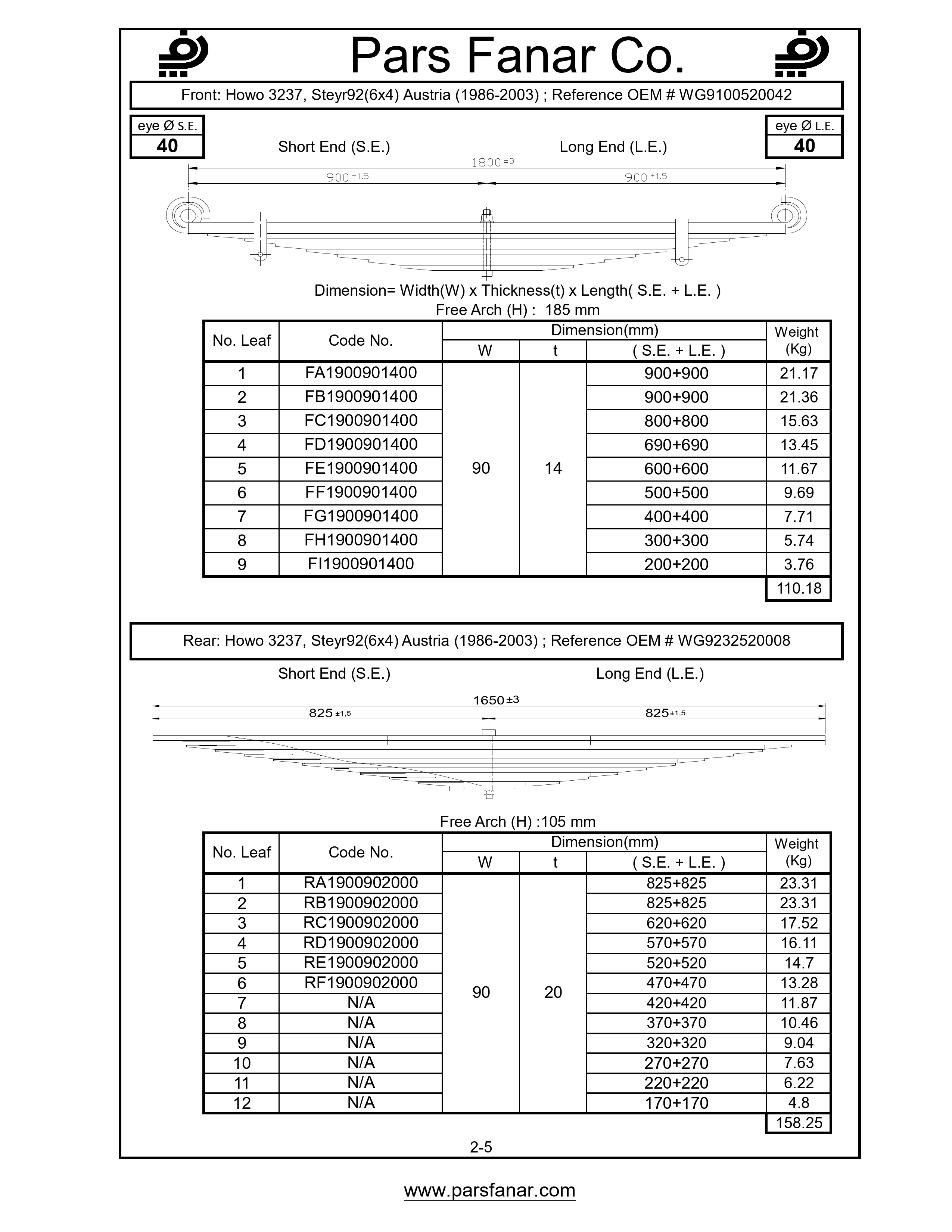 | تعداد لایه های اصلی (M) فنر تخت | |