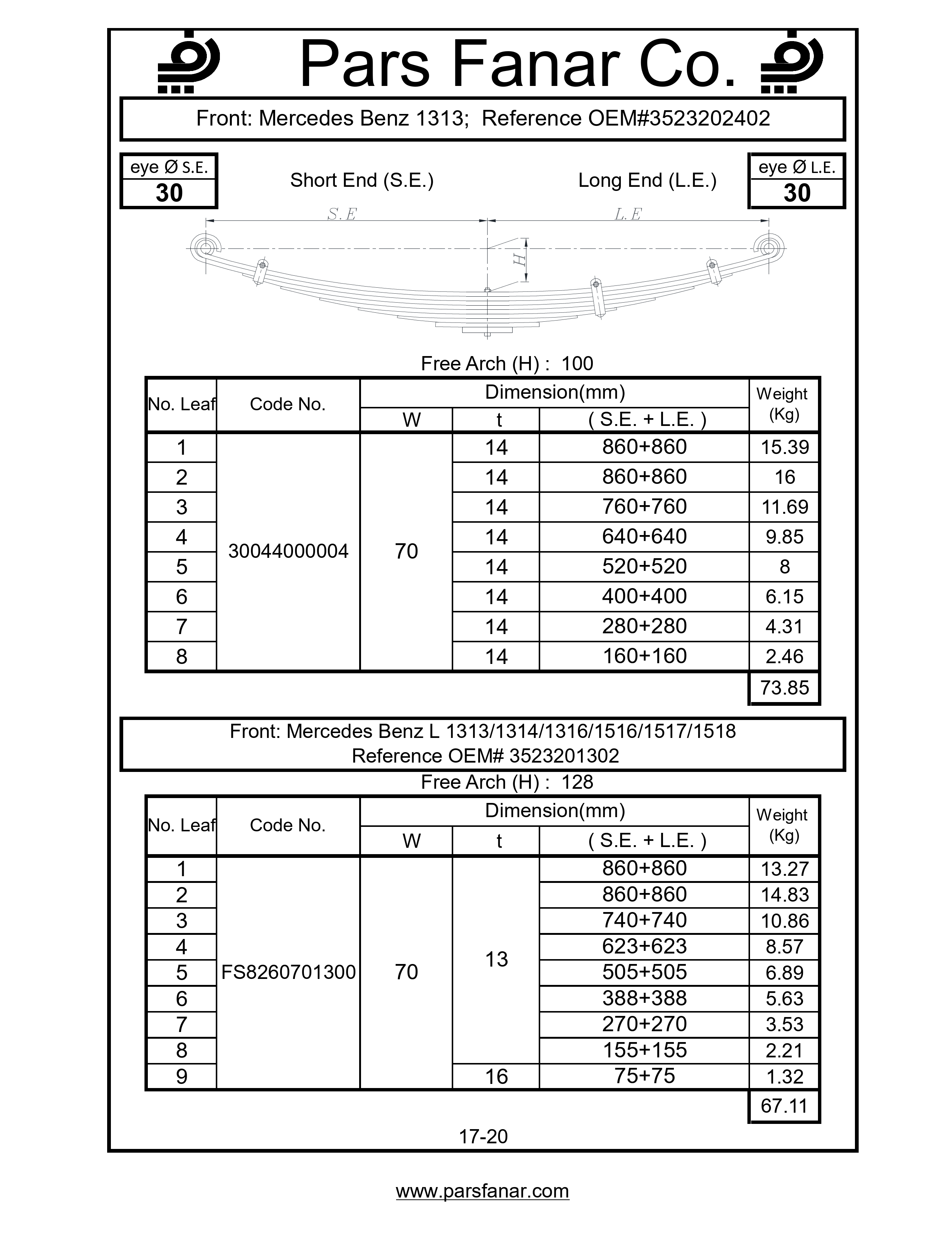| طول لبه بلند (LE) فنر تخت | |