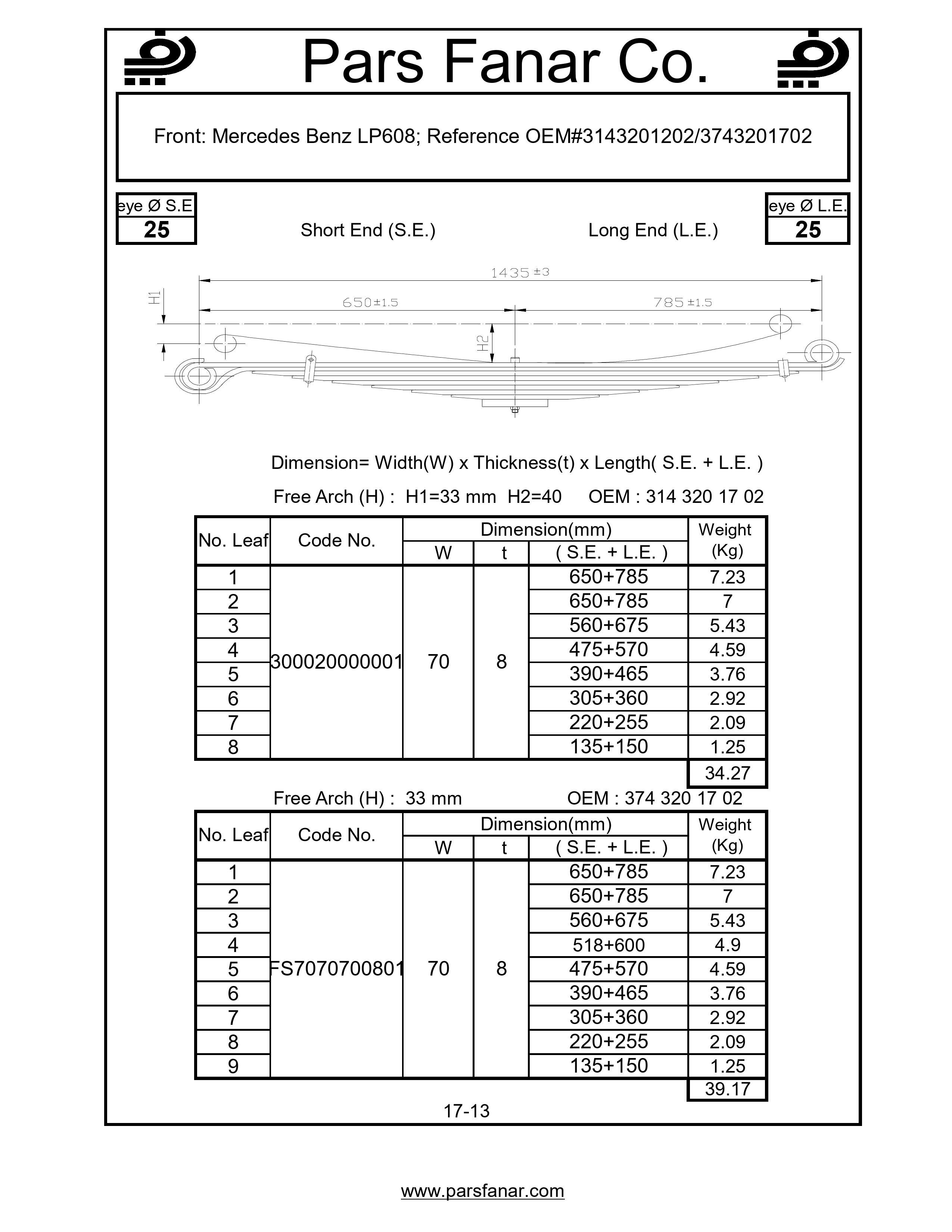 | تعداد لایه های اصلی (M) فنر تخت | |