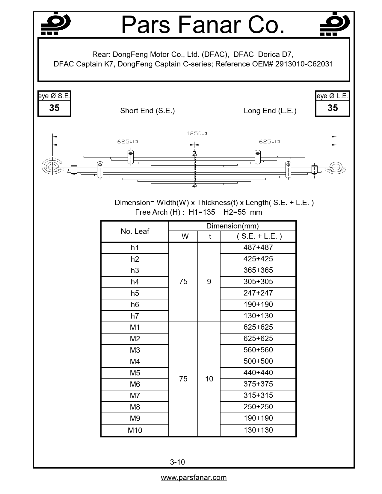| قوس آزاد (H) فنر تخت | 135 |