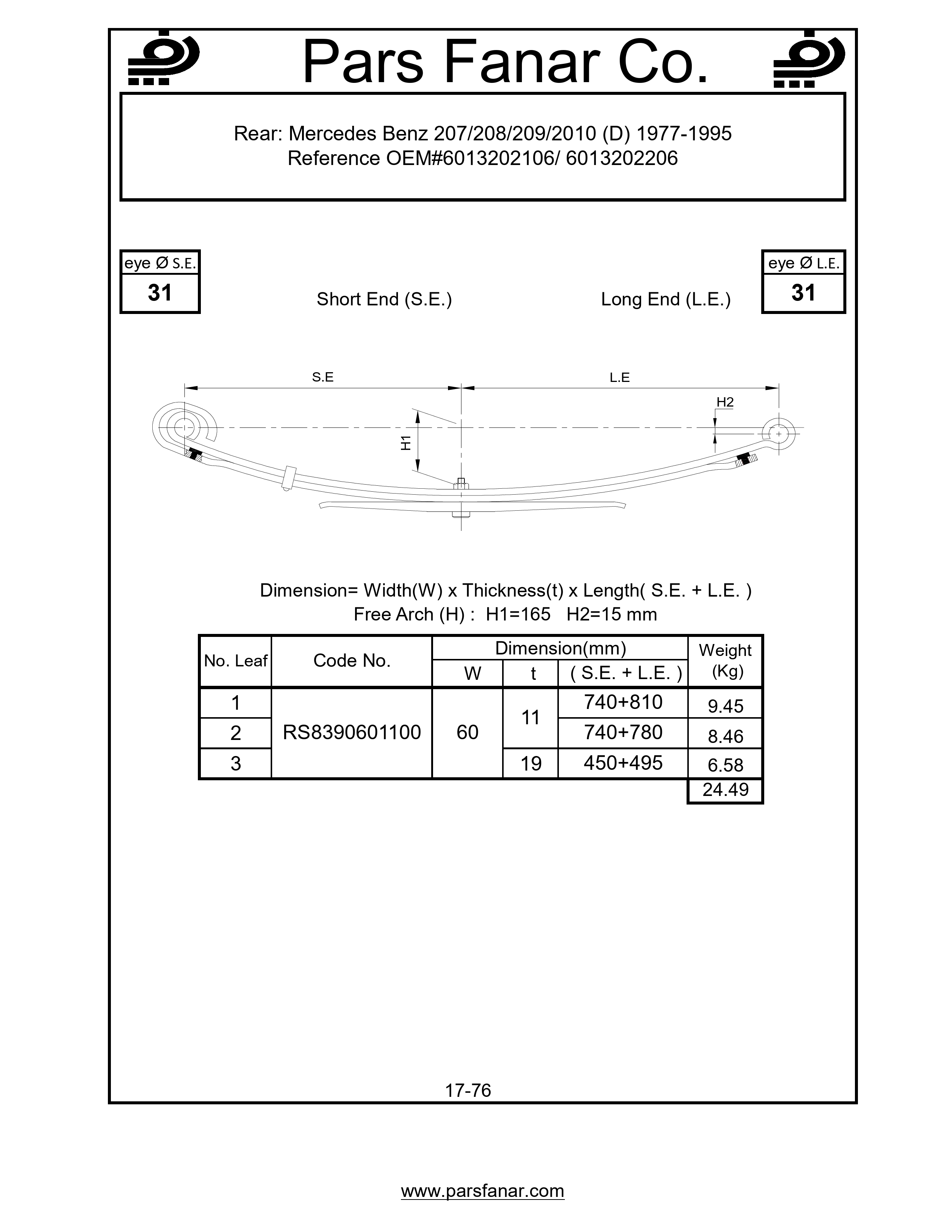 دست فنر چرخ عقب Mercedes Benz