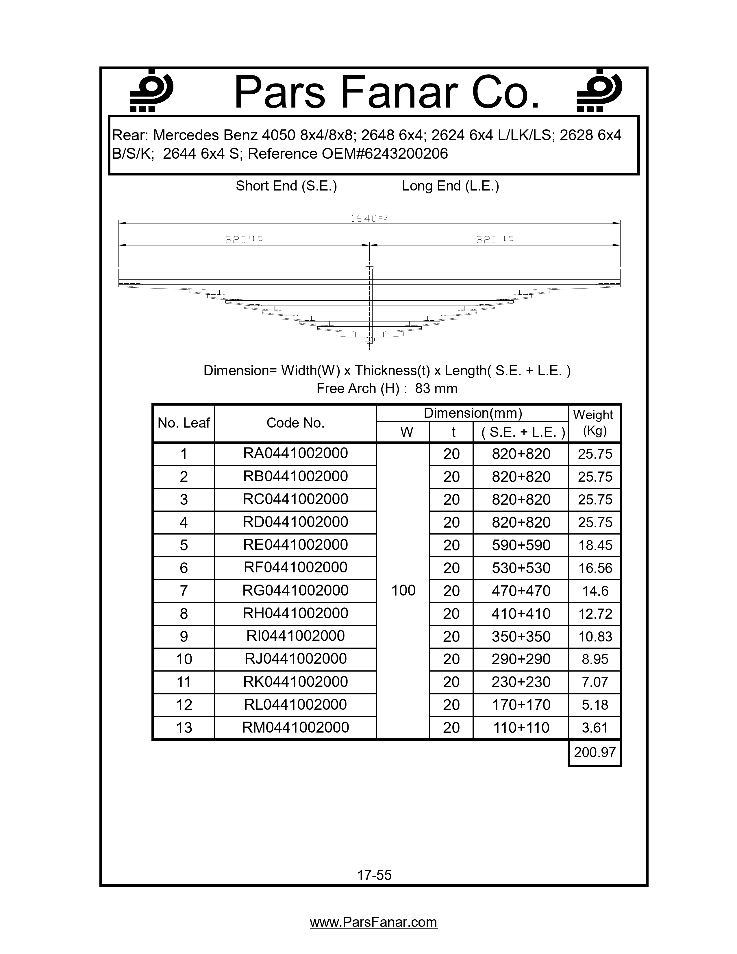 | طول لبه بلند (LE) فنر تخت | |