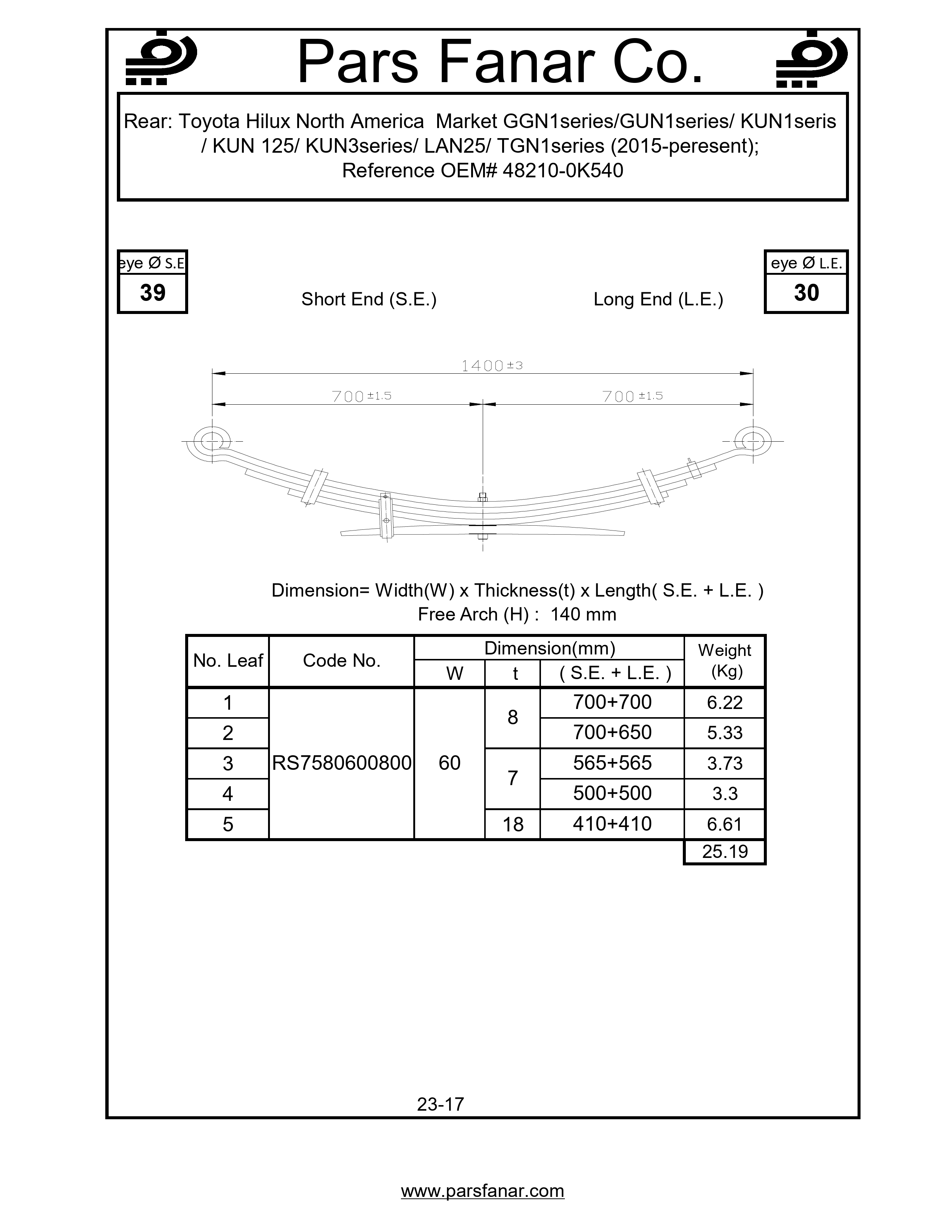 Rear: Toyota Hilux North America Market GGN1series/GUN1series/ KUN1seris / KUN 125/ KUN3series/ LAN25/ TGN1series (2015-peresent)