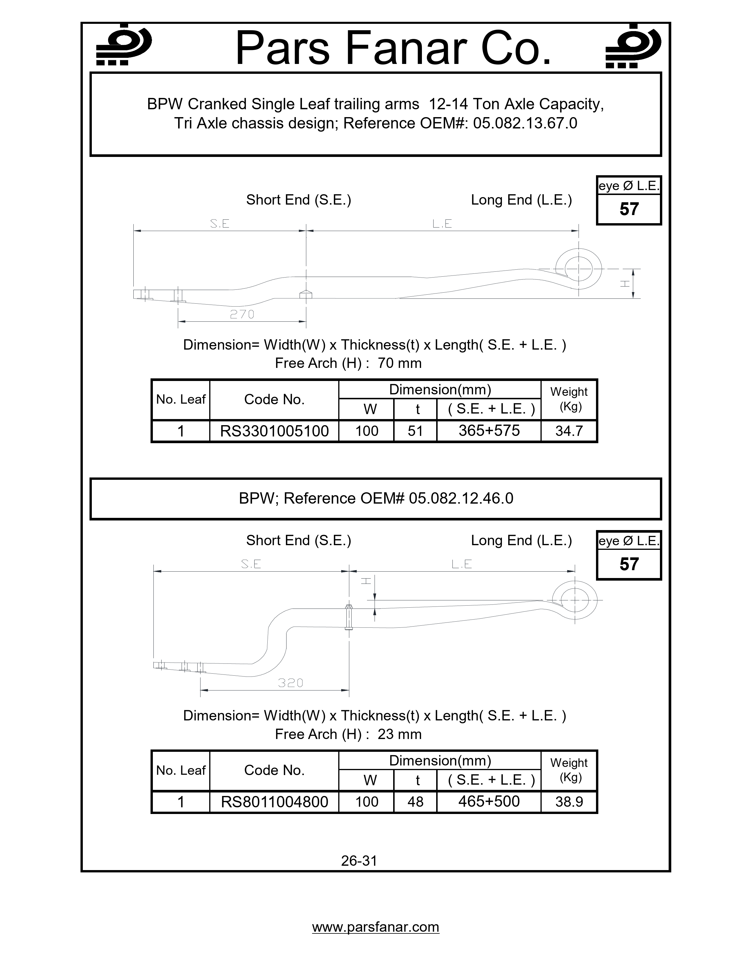 | نام خودرو/کابین/تریلی | BPW Cranked Single Leaf trailing arms 12-14 Ton Axle Capacity |
