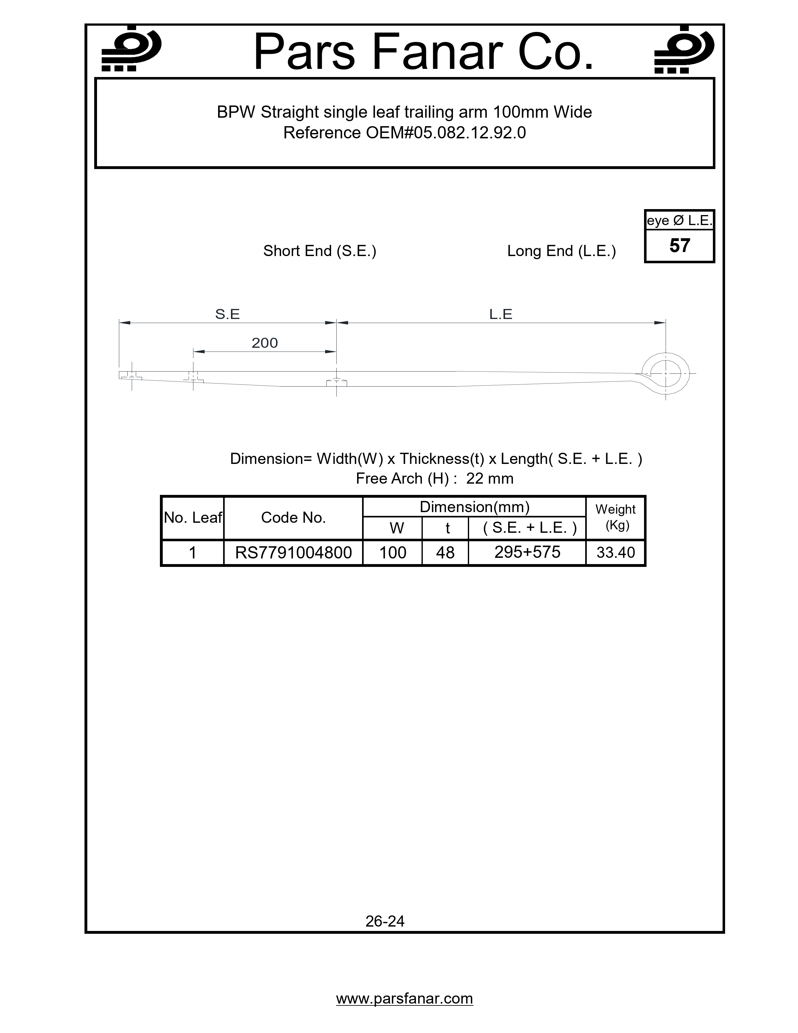 | طول لبه کوتاه (SE) فنر تخت | |