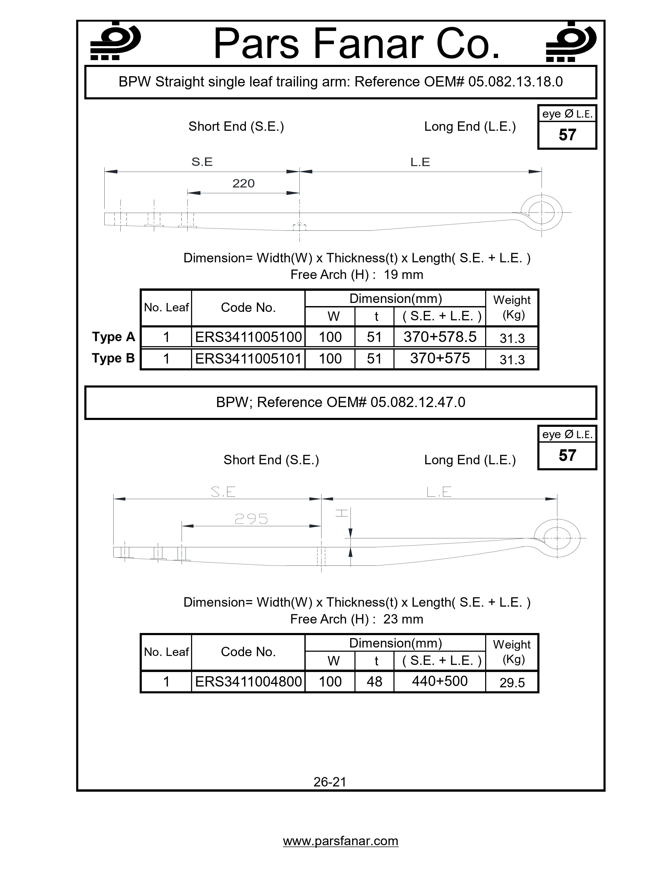 BPW Straight single leaf trailing arm