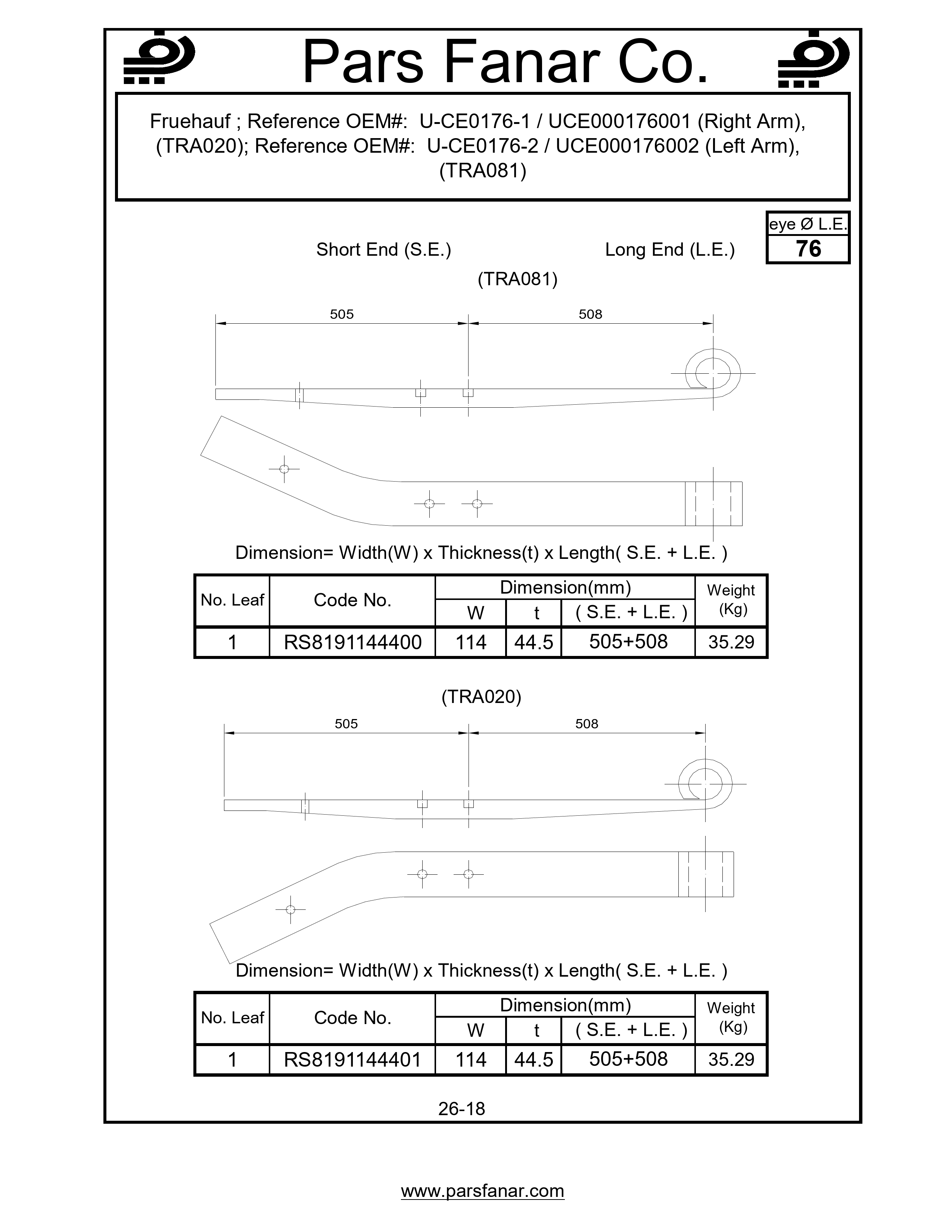 Fruehauf Reference OEM#: U-CE0176-1 / UCE000176001 (Right Arm), (TRA020)