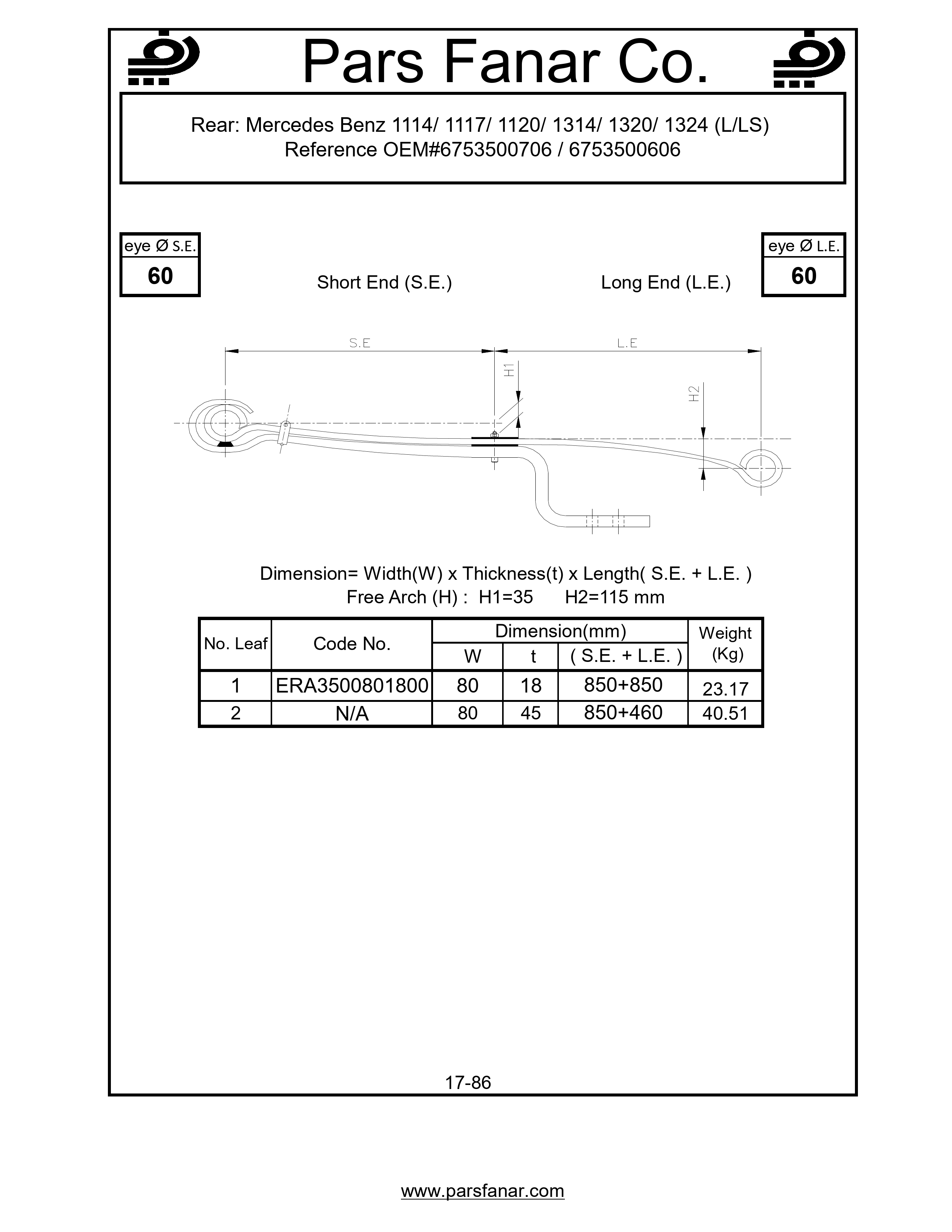 | تعداد لایه های اصلی (M) فنر تخت | |